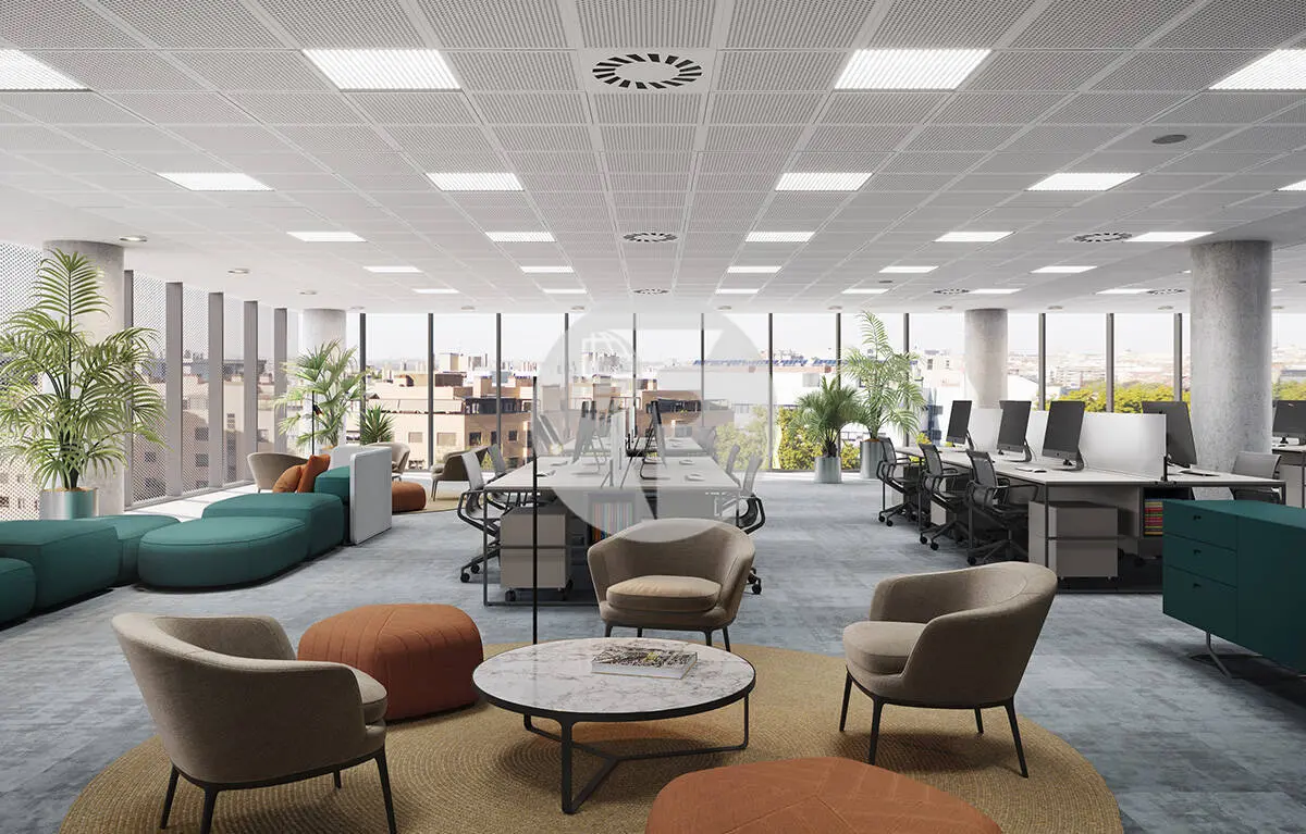 De uso exclusivo de oficinas, el edificio cuenta con un representativo hall de entrada con control de accesos, que refuerza su imagen corporativa y la seguridad del conjunto. Incorpora servicios innovadores como taquillas inteligentes, amplias zonas verdes y terrazas, concebidas como espacios de descanso y encuentro. Las plantas de oficinas se organizan en superficies diáfanas y altamente adaptables, con un ratio de ocupación de 1 persona por cada 8 m², lo que permite una implantación eficiente y confortable.