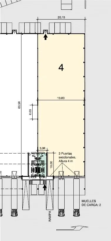 La nau logística disposa de 4 molls de càrrega (2 per mòdul), porta TIR, porta de vianants, oficines, vestuaris i sistema contraincendis mitjançant BIES i ruixadors.