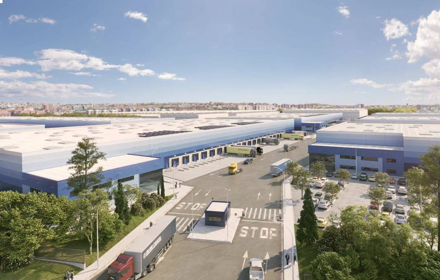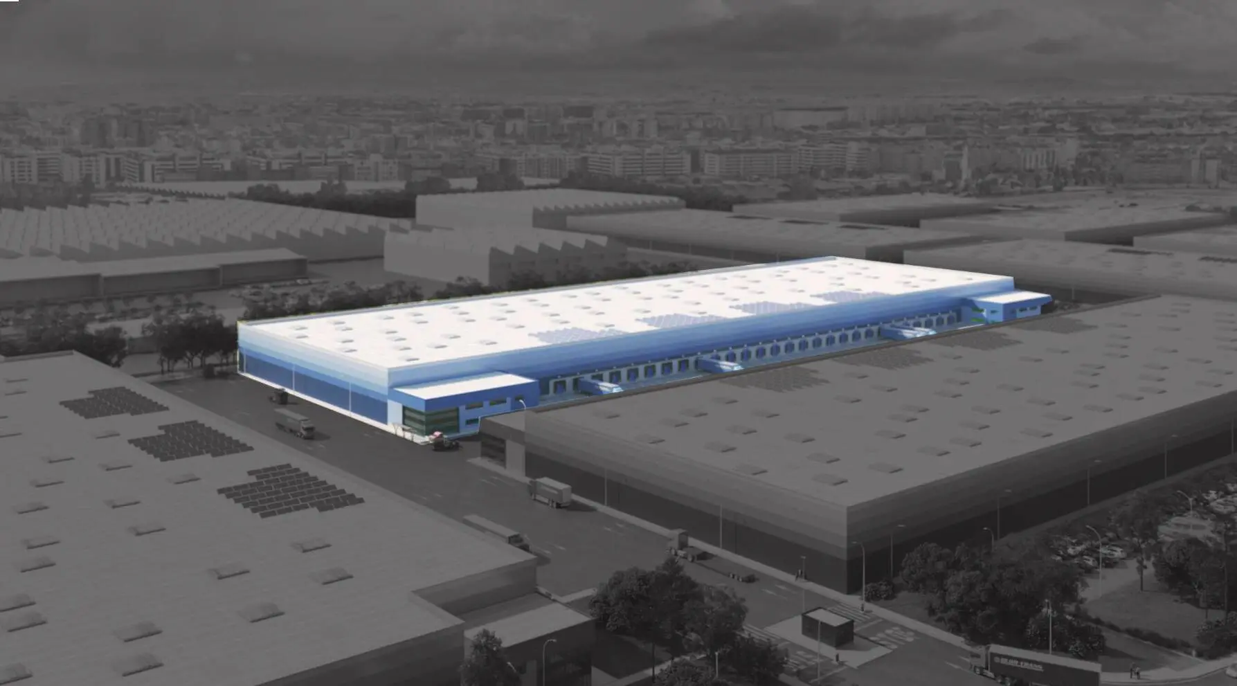 Logistics project located in the last mile, featuring a concrete structure, flat roof, and a height of 11.75 meters.