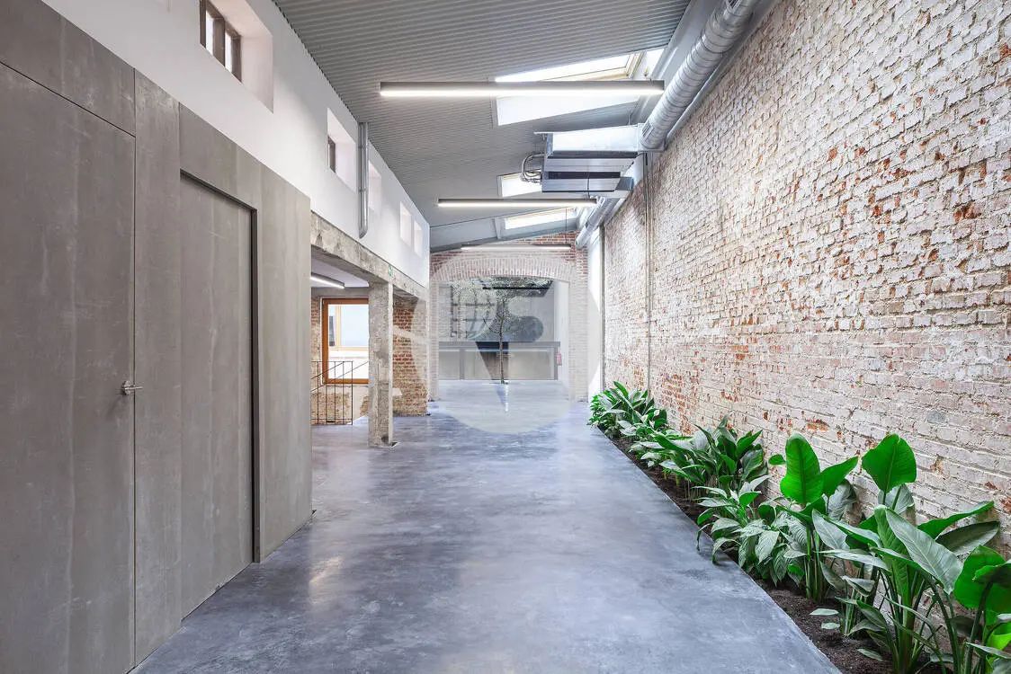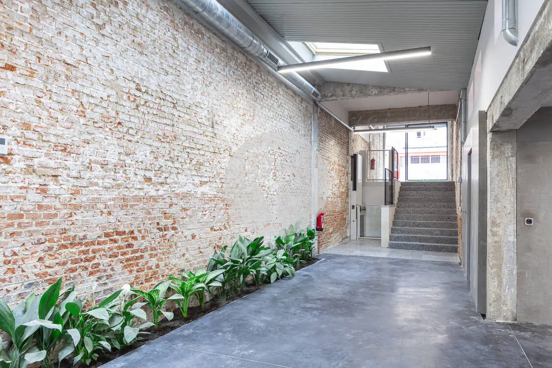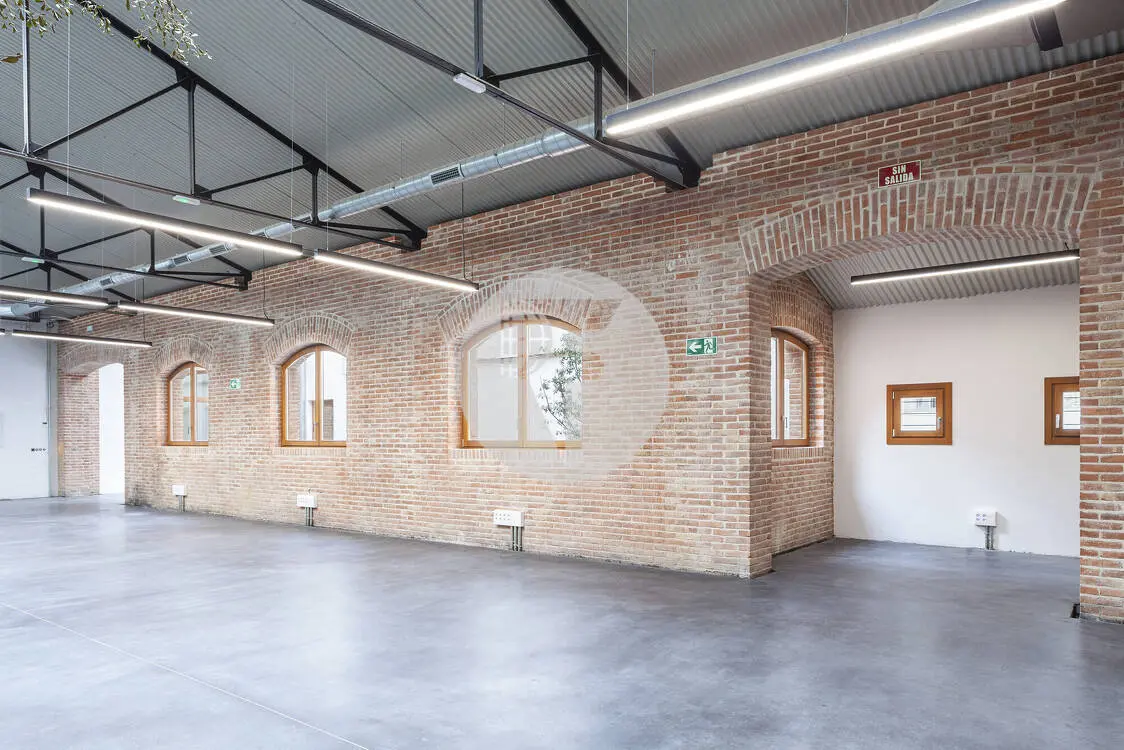 El inmueble, recientemente reformado, ofrece un gran espacio diáfano de carácter singular, donde la arquitectura industrial y los materiales nobles —como el ladrillo visto y la estructura metálica— se combinan con soluciones contemporáneas para crear un entorno de trabajo sofisticado y diferencial. La fantástica entrada de luz natural, potenciada por lucernarios y amplios ventanales, inunda el espacio y realza la amplitud de sus volúmenes, generando una atmósfera luminosa y acogedora.