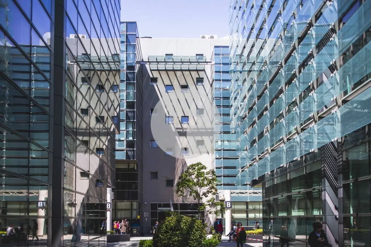El entorno exterior se completa con un patio central ajardinado que integra zonas verdes y amplias áreas de descanso, fomentando espacios de desconexión y socialización. Además, dispone de un espacio wellness orientado al bienestar y la calidad de vida laboral.
