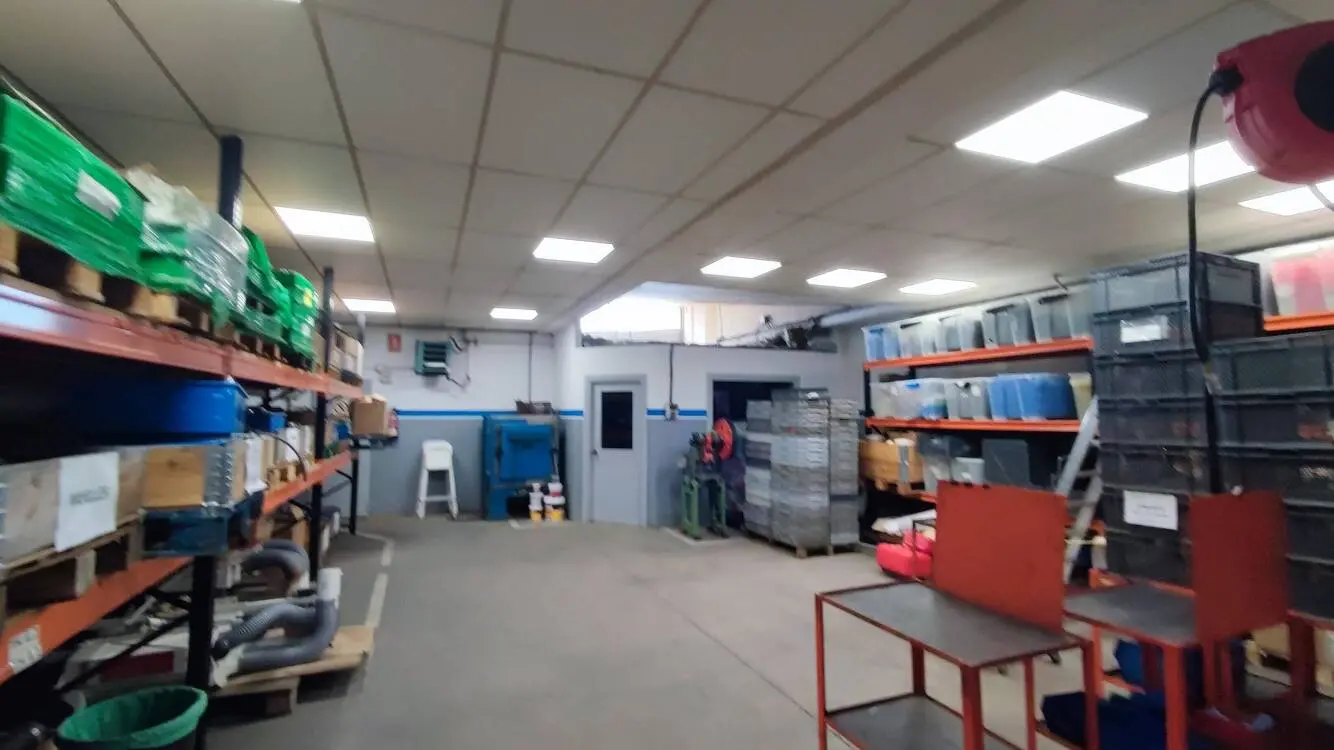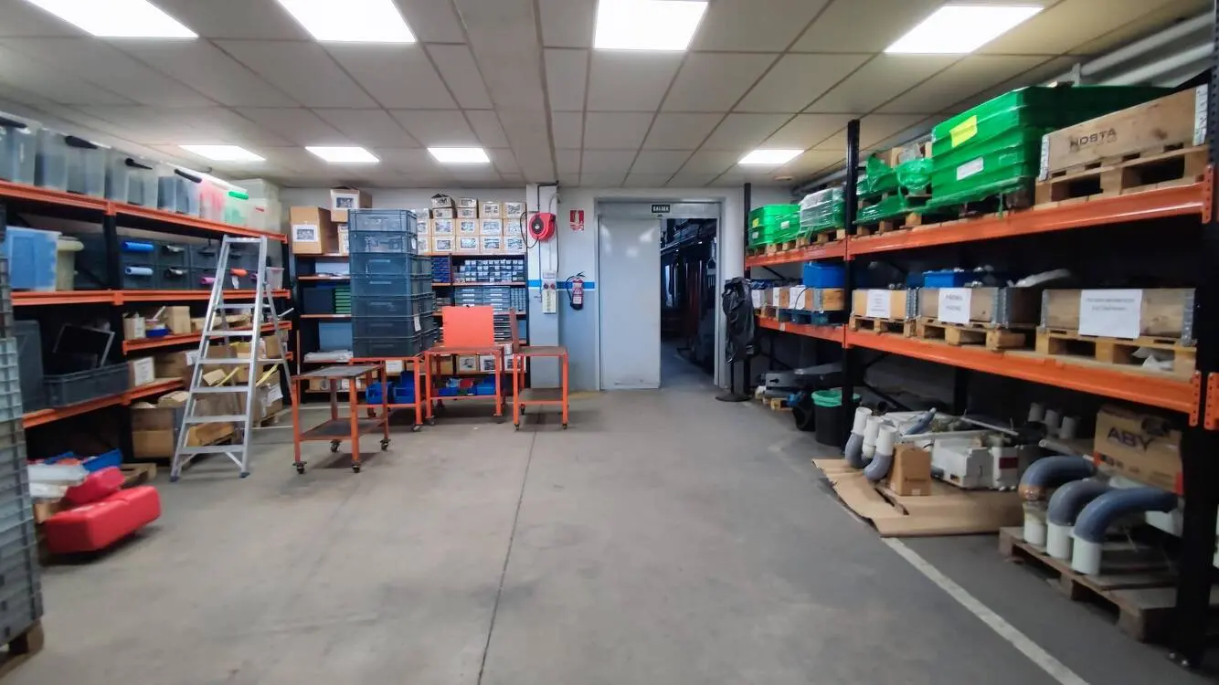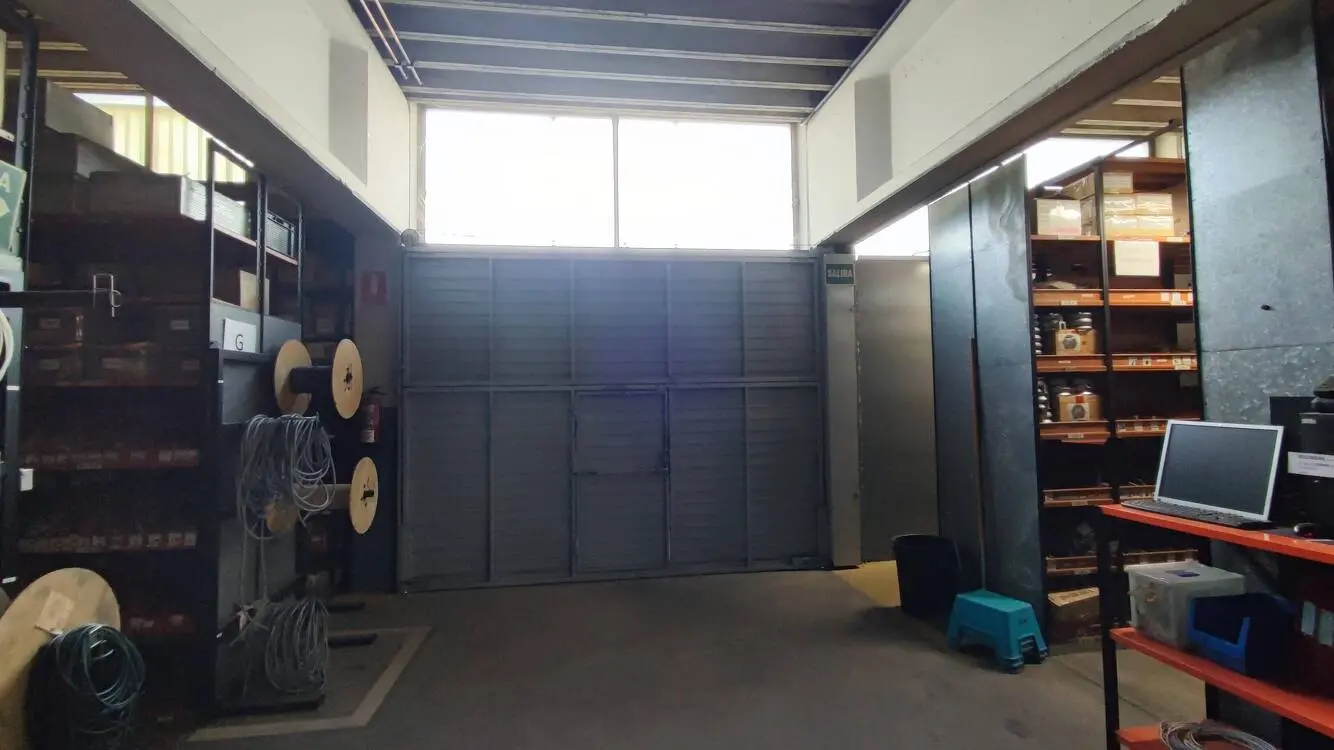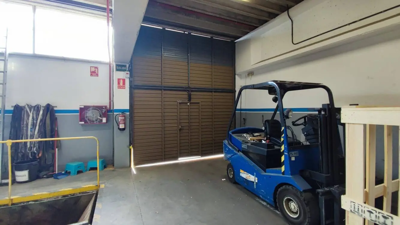 Cuenta con estructura de hormigón y cubierta tipo sándwich, con una altura libre de entre 4 y 5 metros, ideal para actividades logísticas o industriales ligeras.