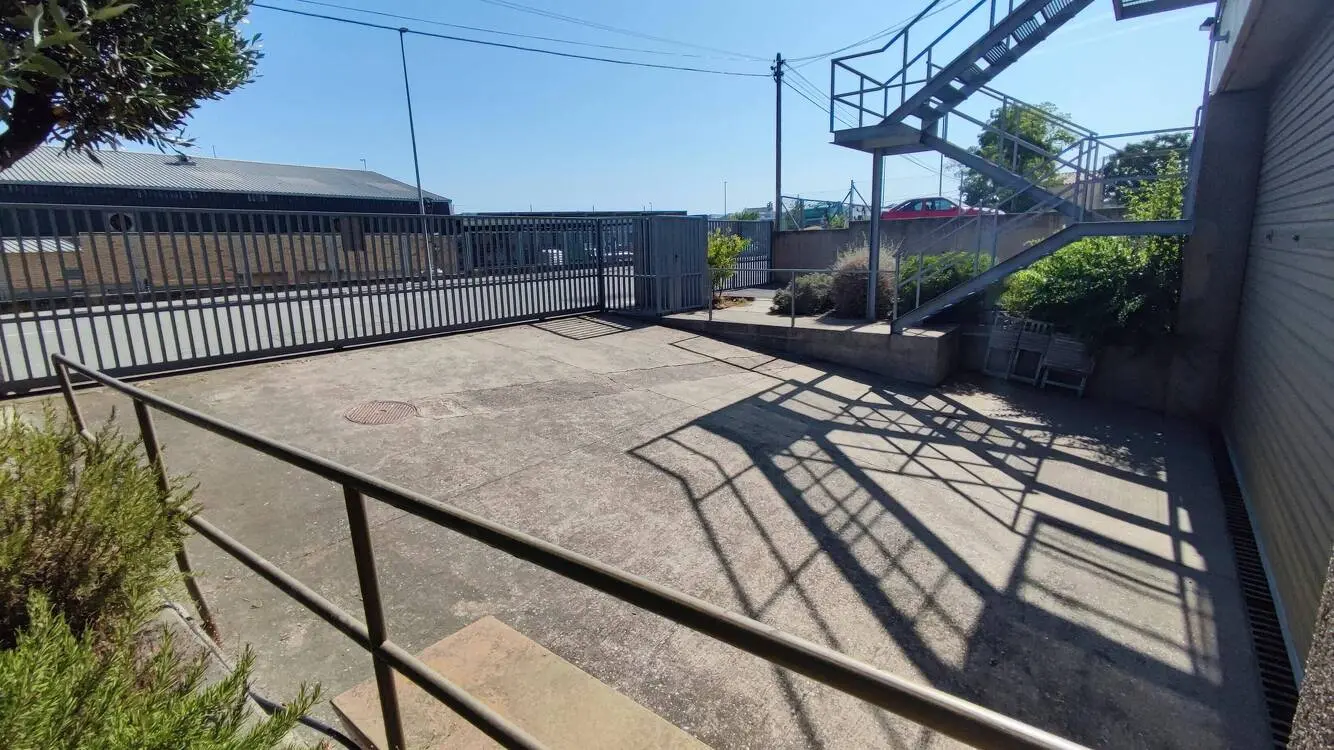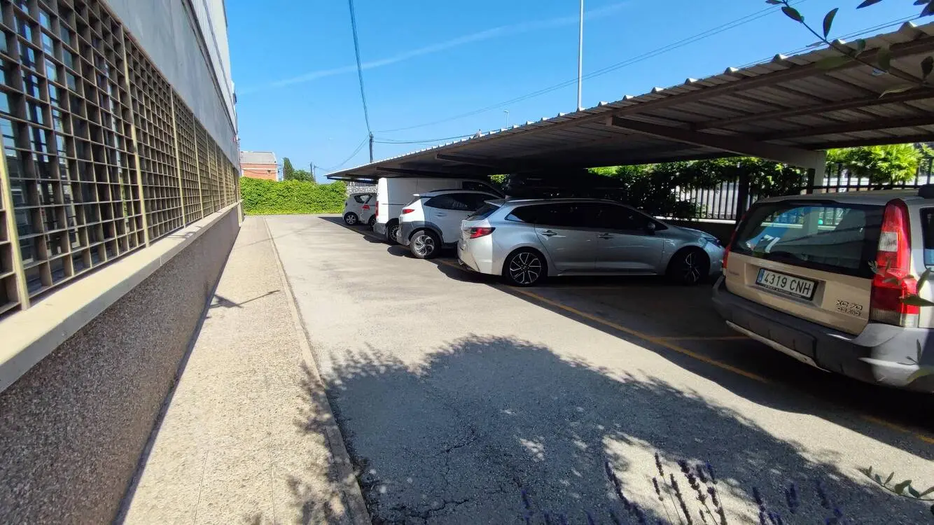 Dispone además de un amplio patio perimetral de 1.580 m², 8 plazas de aparcamiento y sistema contra incendios mediante BIES, extintores y alarma.