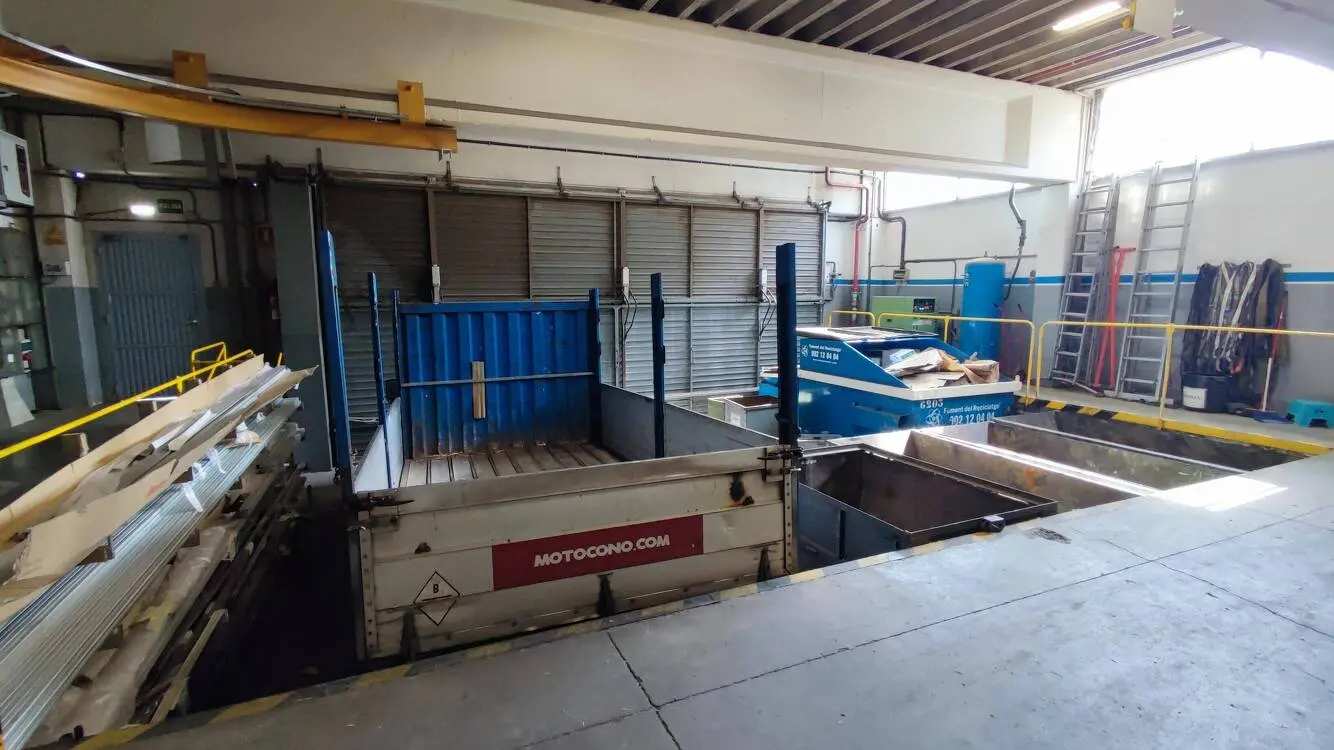 La nave está equipada con 3 muelles de carga interiores y puente grúa, facilitando las operaciones de carga y descarga.