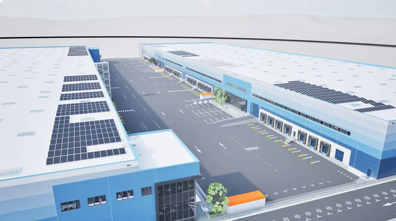 Proyecto logístico ubicado en ultima milla con estructura de hormigón, cubierta plana y altura de 11,75 metros.
