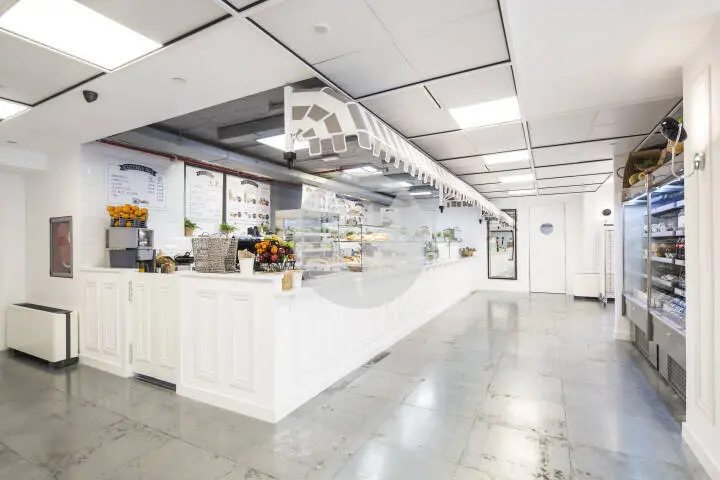 - Suelo técnico y falso techo con modernas luminarias LED.