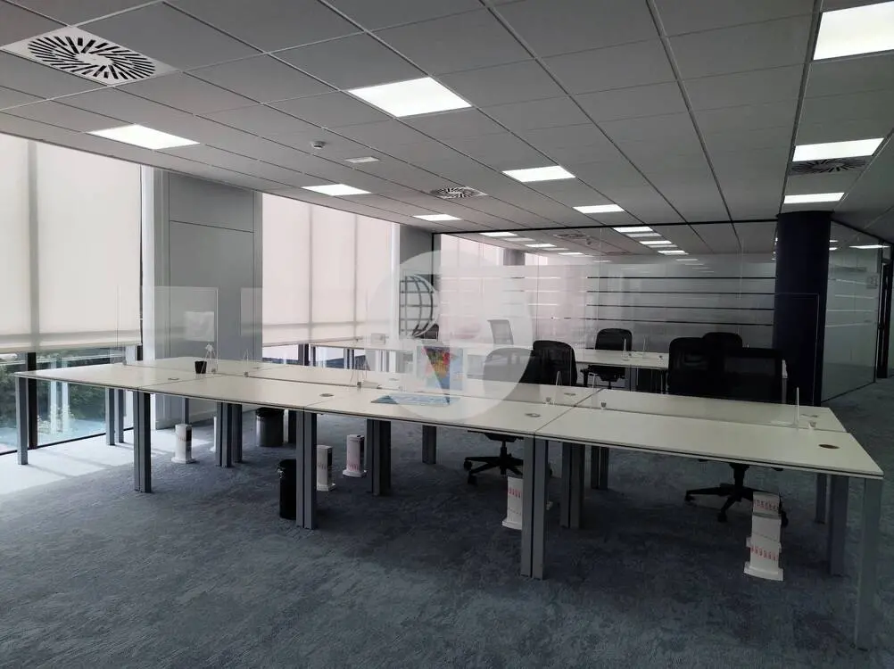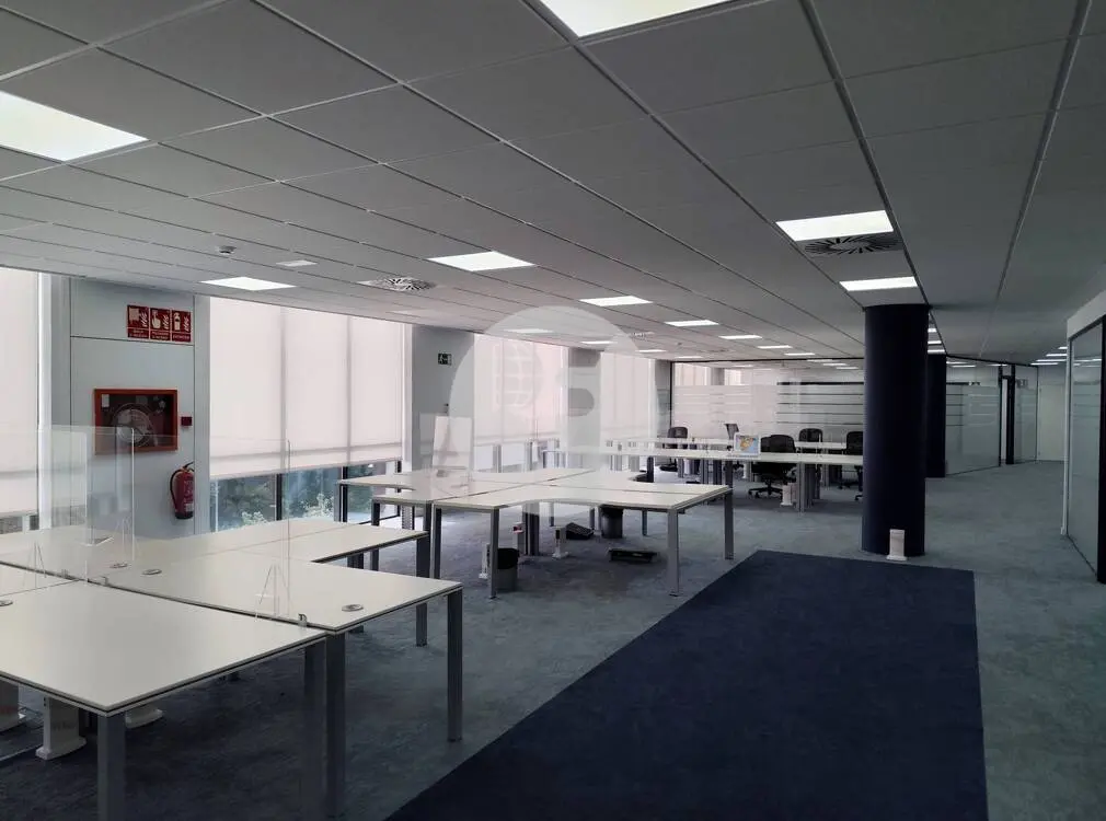 La oficina en cuestión es diáfana, proporcionando una excelente iluminación natural que crea un entorno de trabajo agradable. Además, está equipada con falso techo y luminarias empotradas, sistema de climatización frío/calor regulable por zonas, suelo técnico, sistemas de detección y extinción de incendios, alumbrado de emergencia y preinstalación eléctrica, telefónica e informática.