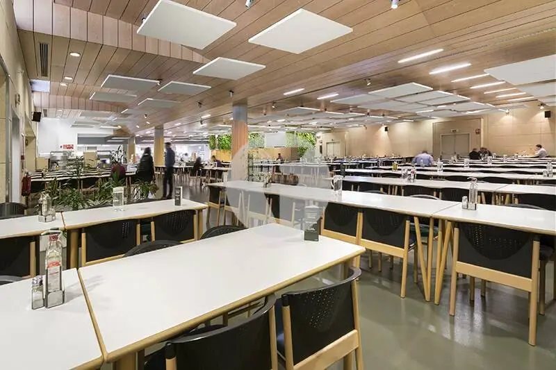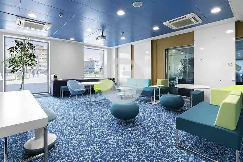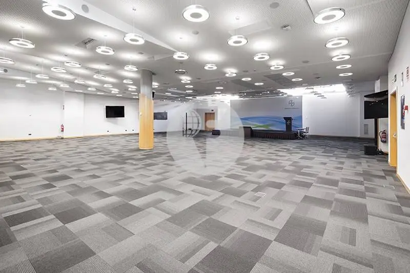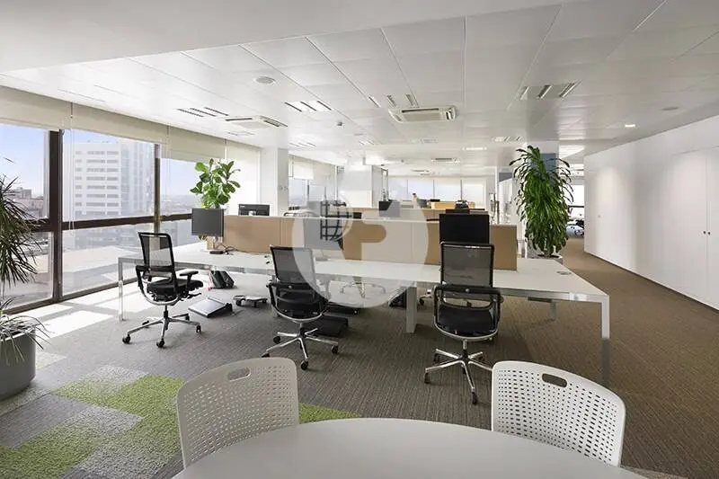 Oficinas diáfanas en alquiler con excelente luz natural, falso techo metálico con luminarias empotradas, climatización frío-calor, cableado instalado de electricidad, voz y datos, amplios bloques de aseos por planta y office. Alumbrado de emergencia y detección de incendios.