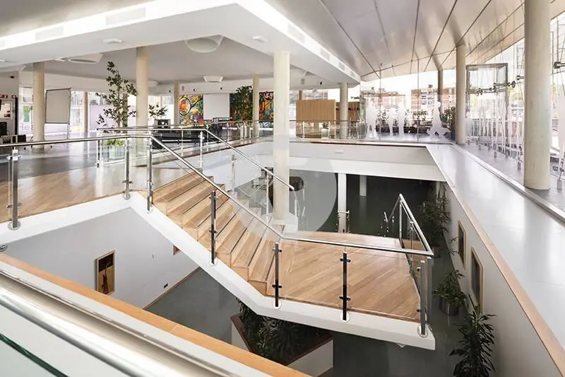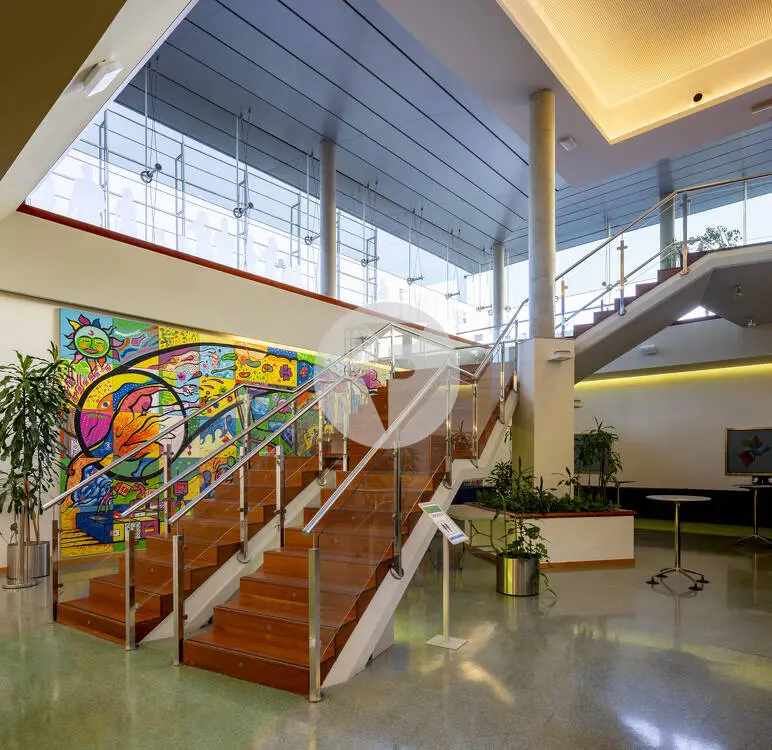 Edificio de fachada acristalada ubicado en Sant Joan Despí, en la Av. del Baix Llobregat. Diseño moderno, gran atrio central, representativo hall de entrada, seguridad 24 h, salas de reuniones, centro de convenciones y cantina-catering. Ascensores.