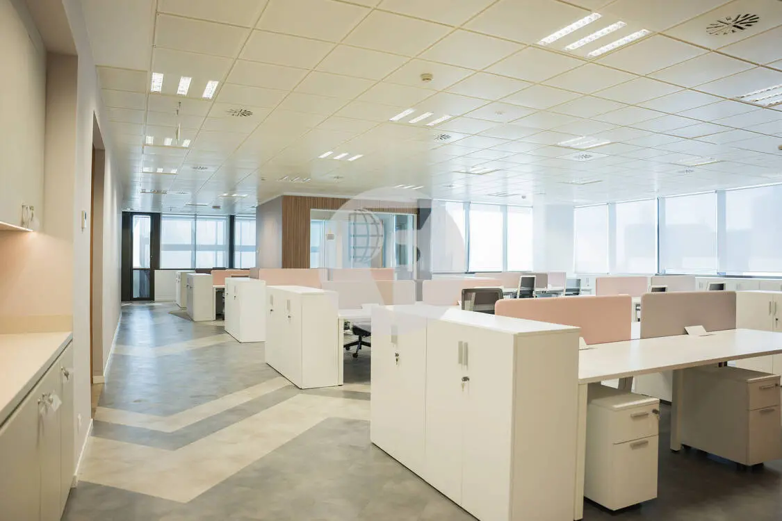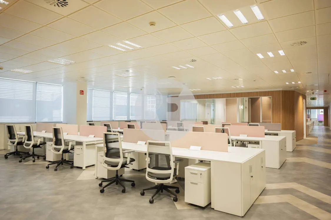 Las oficinas son diáfanas, con excelente iluminación natural, altura libre de 2,85 metros, suelo técnico y falso techo, ideales para adaptarse a diferentes necesidades de distribución. Además, están equipadas con sistema de climatización eficiente, promoviendo un ambiente de trabajo confortable.