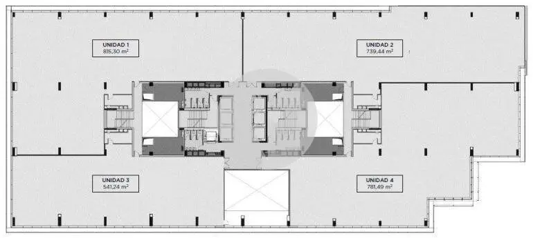 La planta tiene la posibilidad de dividirse en 3 módulos a partir de 728 m2.